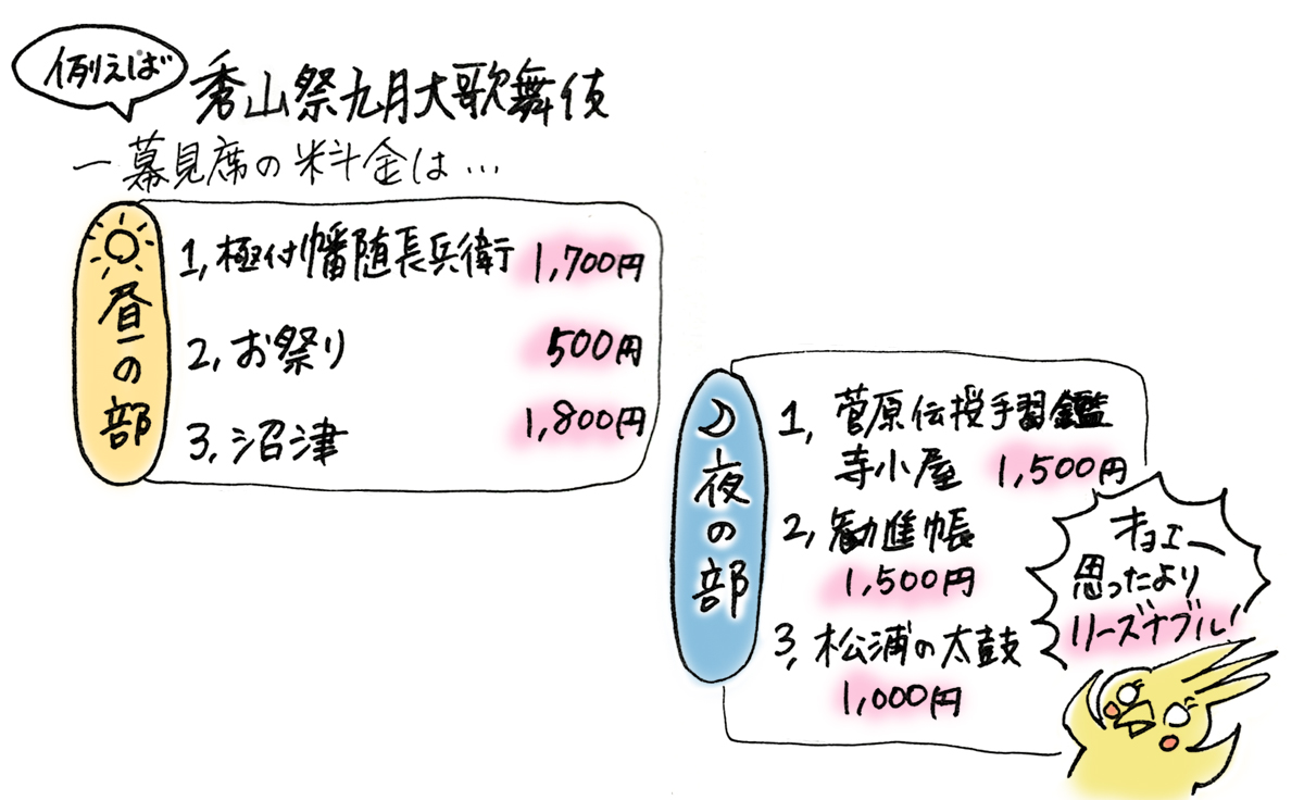 「秀山祭九月大歌舞伎」の幕見席の料金は、こんな感じ。